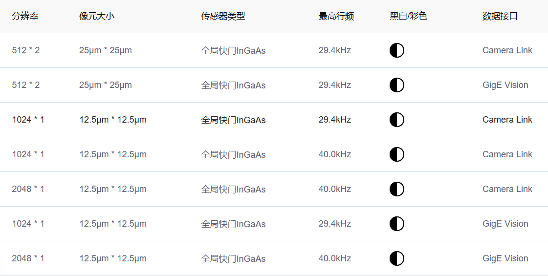 分辨率涵蓋0.5-2K,支持GigE、Camera Link等數(shù)據(jù)接口