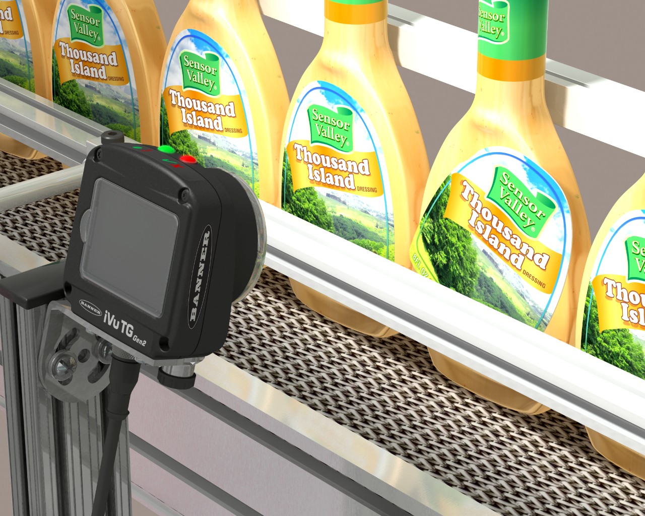 隨著每個沙拉醬瓶離開標(biāo)簽站,配置為Match工具的iVu系列傳感器將負(fù)責(zé)對標(biāo)簽進(jìn)行檢查,