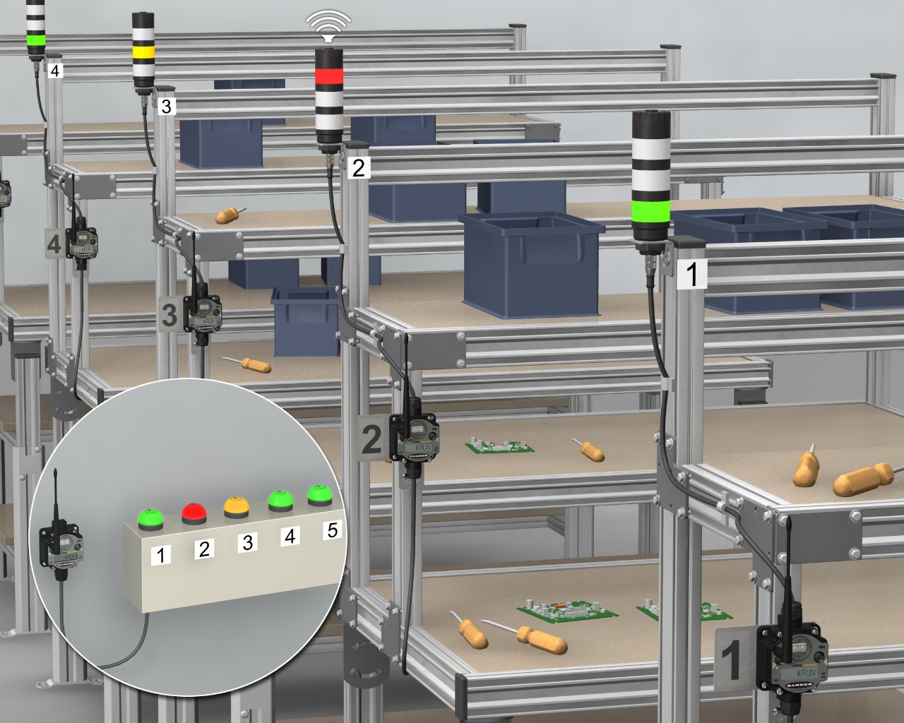 為了提高效率,工作站的裝配工需要通過一種方法,在不離開工作站的情況下進(jìn)行呼叫補(bǔ)給零部件和提供服務(wù)。 更快地獲得部件將提高生產(chǎn)效率,而使用遠(yuǎn)程指示器系統(tǒng)可以讓主管掌控每個工作站的狀態(tài),從而讓管理人員能夠快速解決生產(chǎn)問題并匯總生產(chǎn)指標(biāo)。