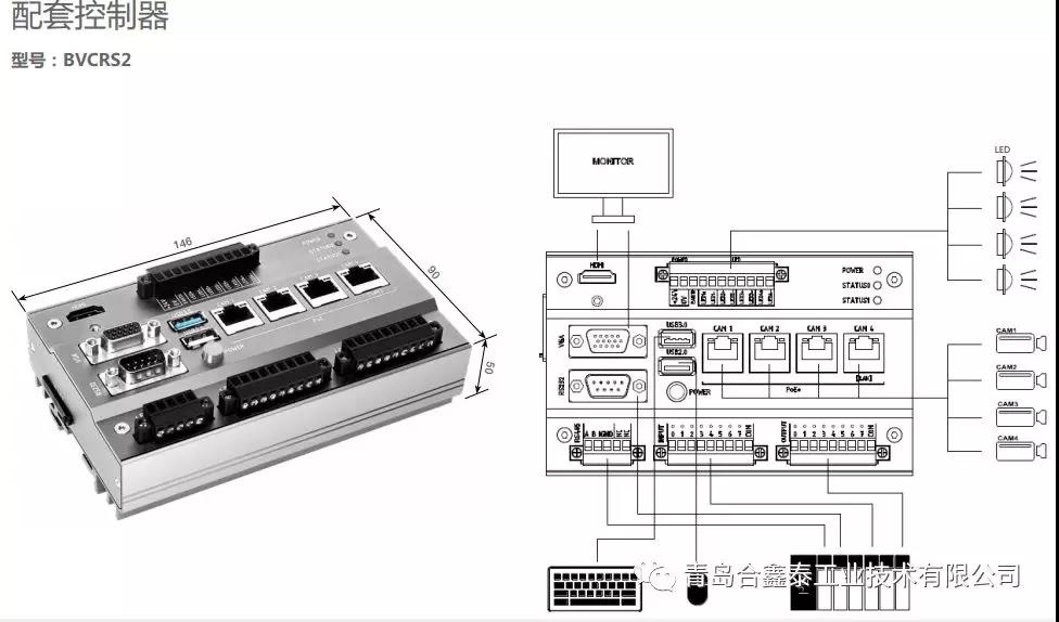 1.一體化設(shè)計,相機、控制器、鏡頭、光源、顯示屏(業(yè)內(nèi)獨創(chuàng)),無需外接PC,點擊觸控屏幕即可輕松編程操作;