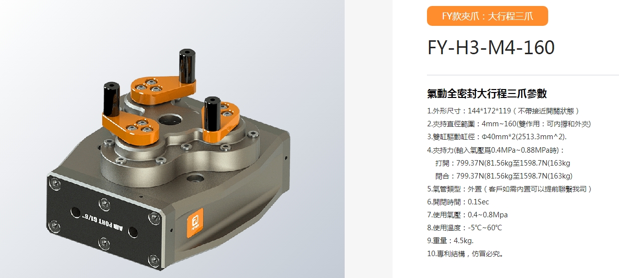 大行程夾爪屬于典型的一只手多用的夾爪,在使用過程中,不需要更換夾爪,就可以完成多種抓取工作。