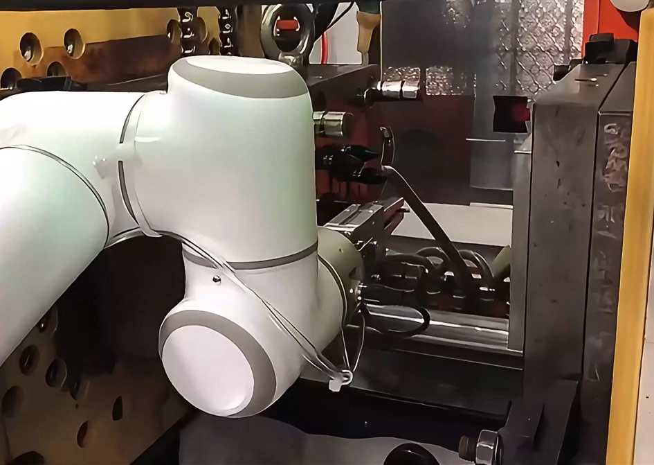 機(jī)器人系統(tǒng):配備了多關(guān)節(jié)協(xié)作機(jī)器人,具備較高的負(fù)載能力和靈活的運(yùn)動(dòng)控制性能。根據(jù)注塑件的重量和尺寸,選擇了合適的協(xié)作機(jī)器人型號(hào),并安裝了專(zhuān)用的末端執(zhí)行器,如吸盤(pán)或夾爪,以適應(yīng)不同形狀的注塑件抓取需求。